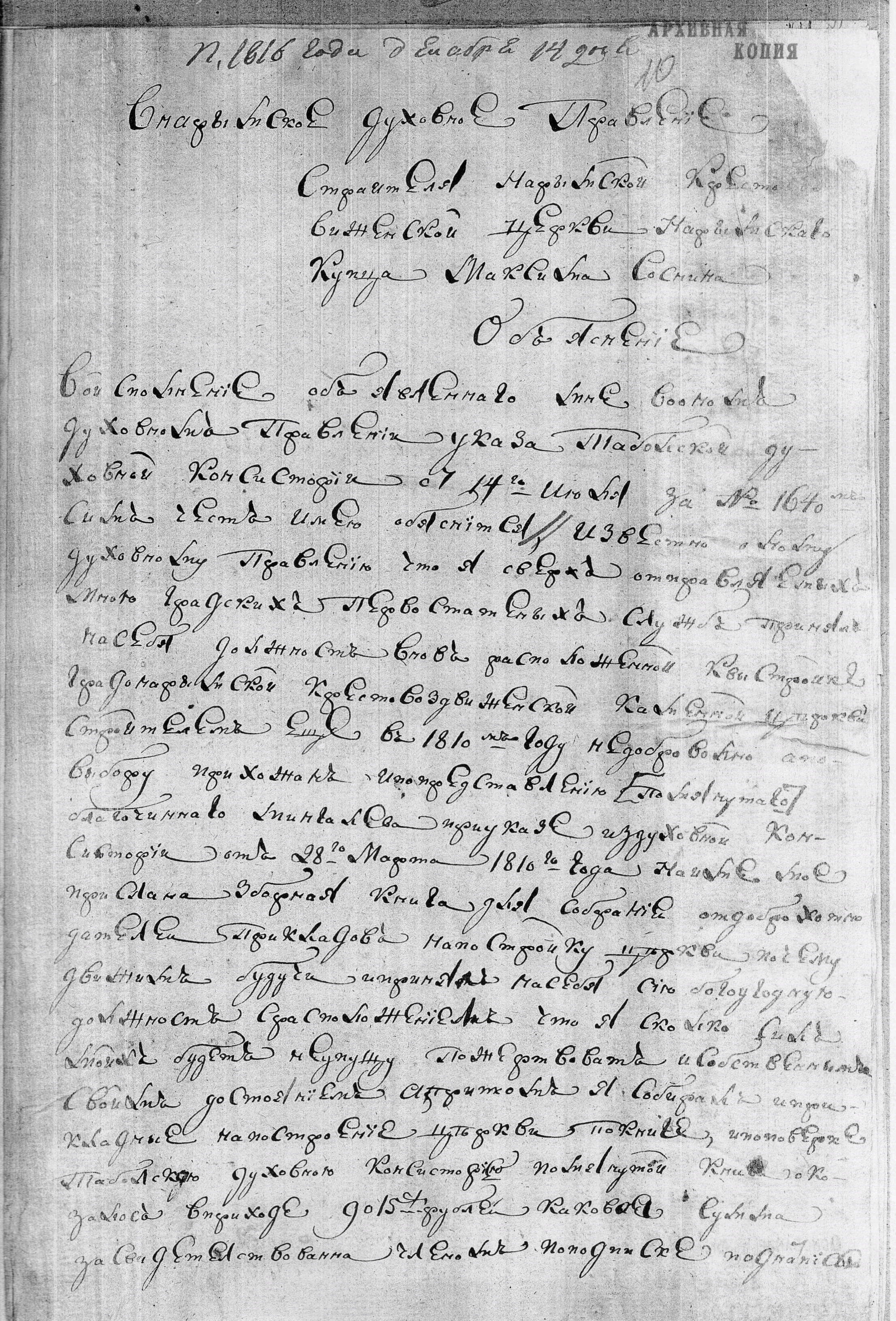 Архиепископом Амвросием4 была наложена резолюция на «Доношение» М. Соснина: