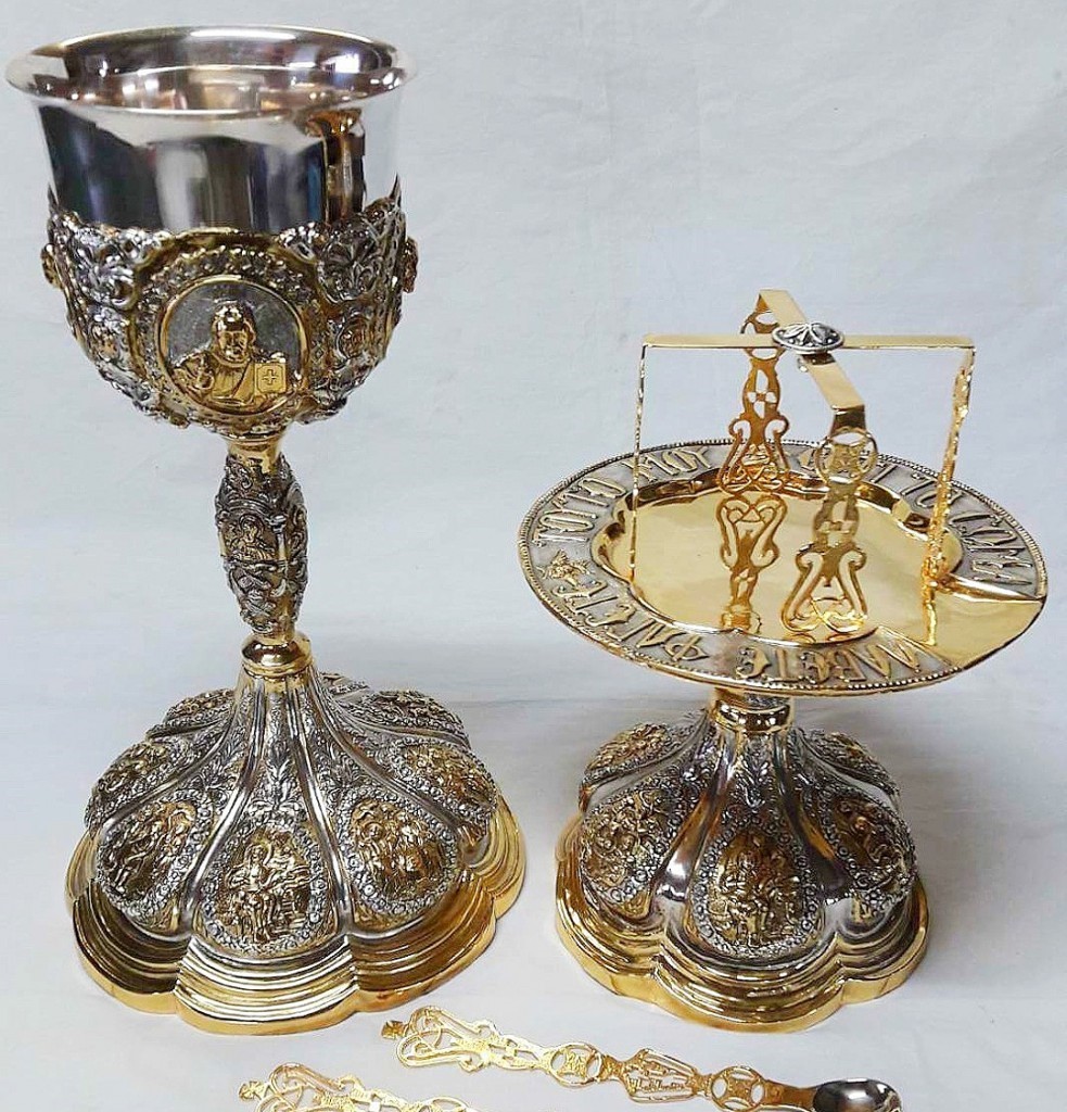 2) Серебро-вызолоченный сосуд с приборами в 1400 руб., пожертв. тем же купцом Родюковым в 1837 году;