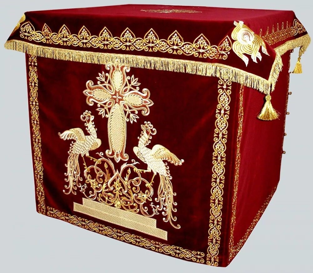 5) Напрестольная бархатная одежда, шитая золотом, в 860 руб., пожертв. в 1852 г. купцом И.С. Родюковым