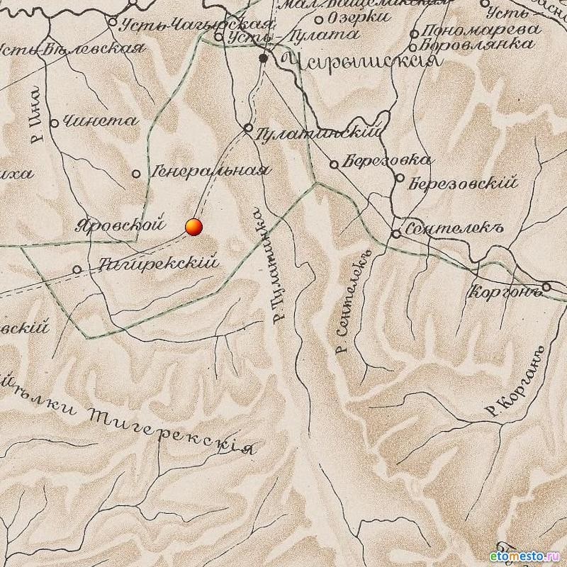 В начале ХХ в. Бийская линия представляла собой цепь поселений, которая тянулась на 389 верст от города Усть-Каменогорска до города Бийска.