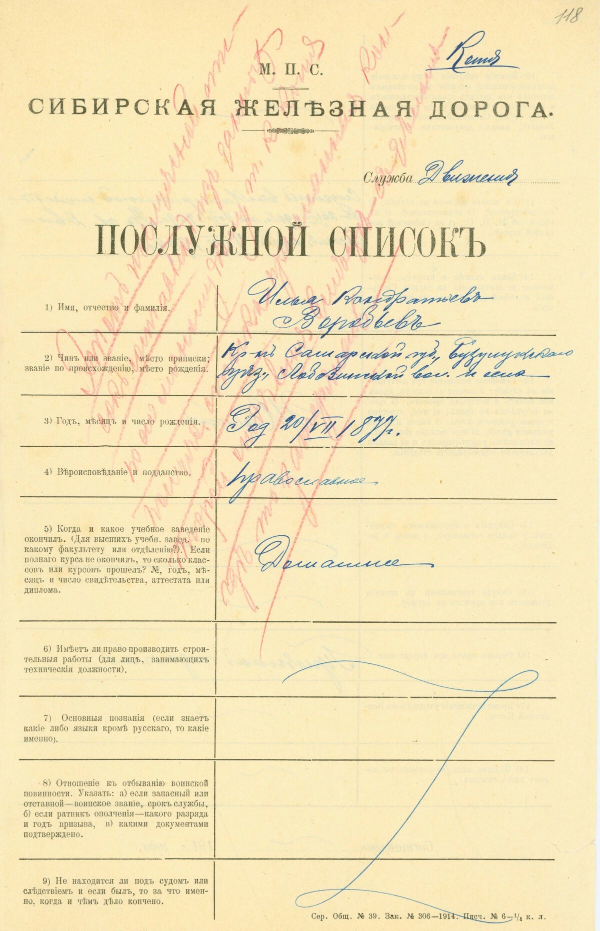 Илья Кондратьевич Воробьёв, железнодорожник...