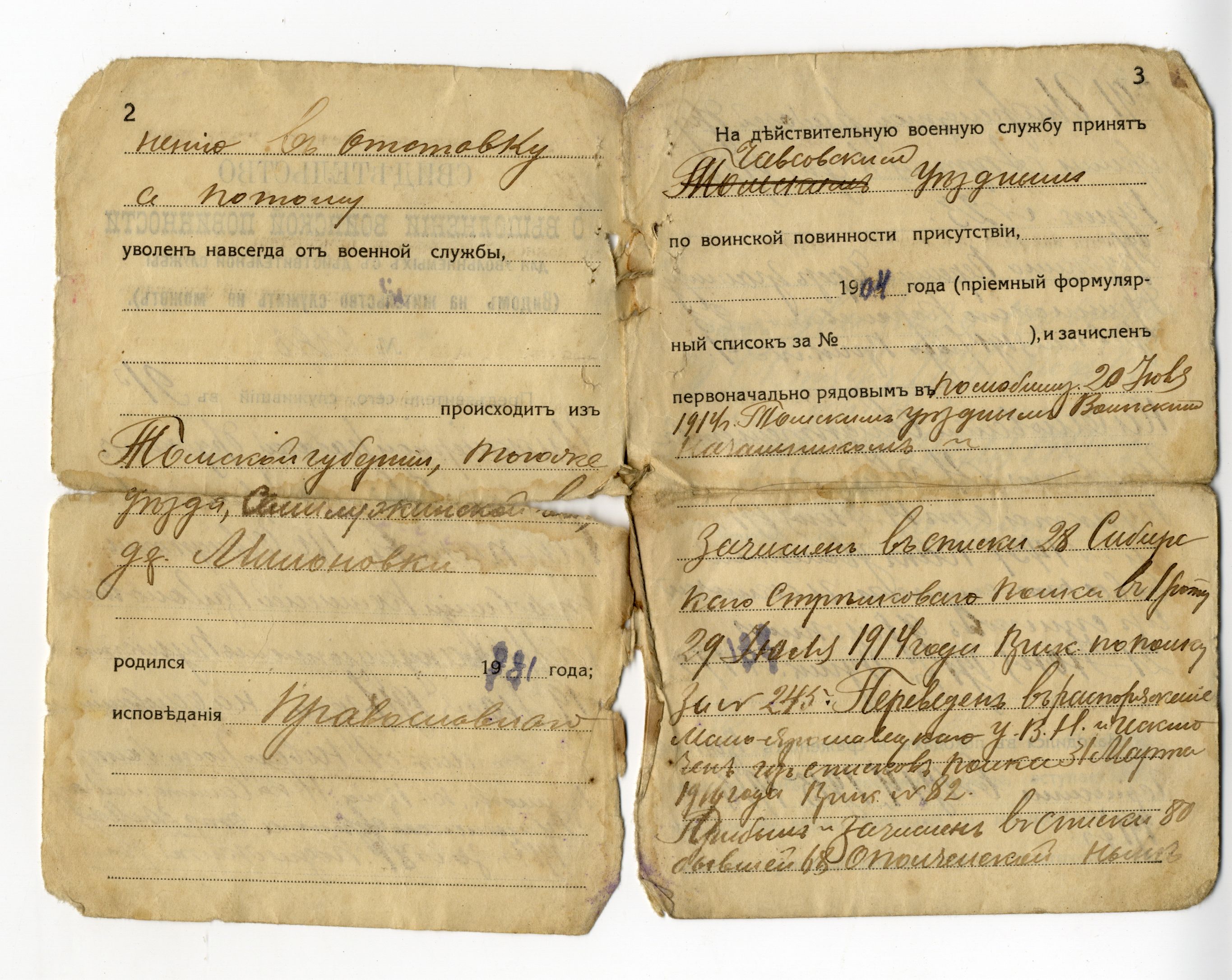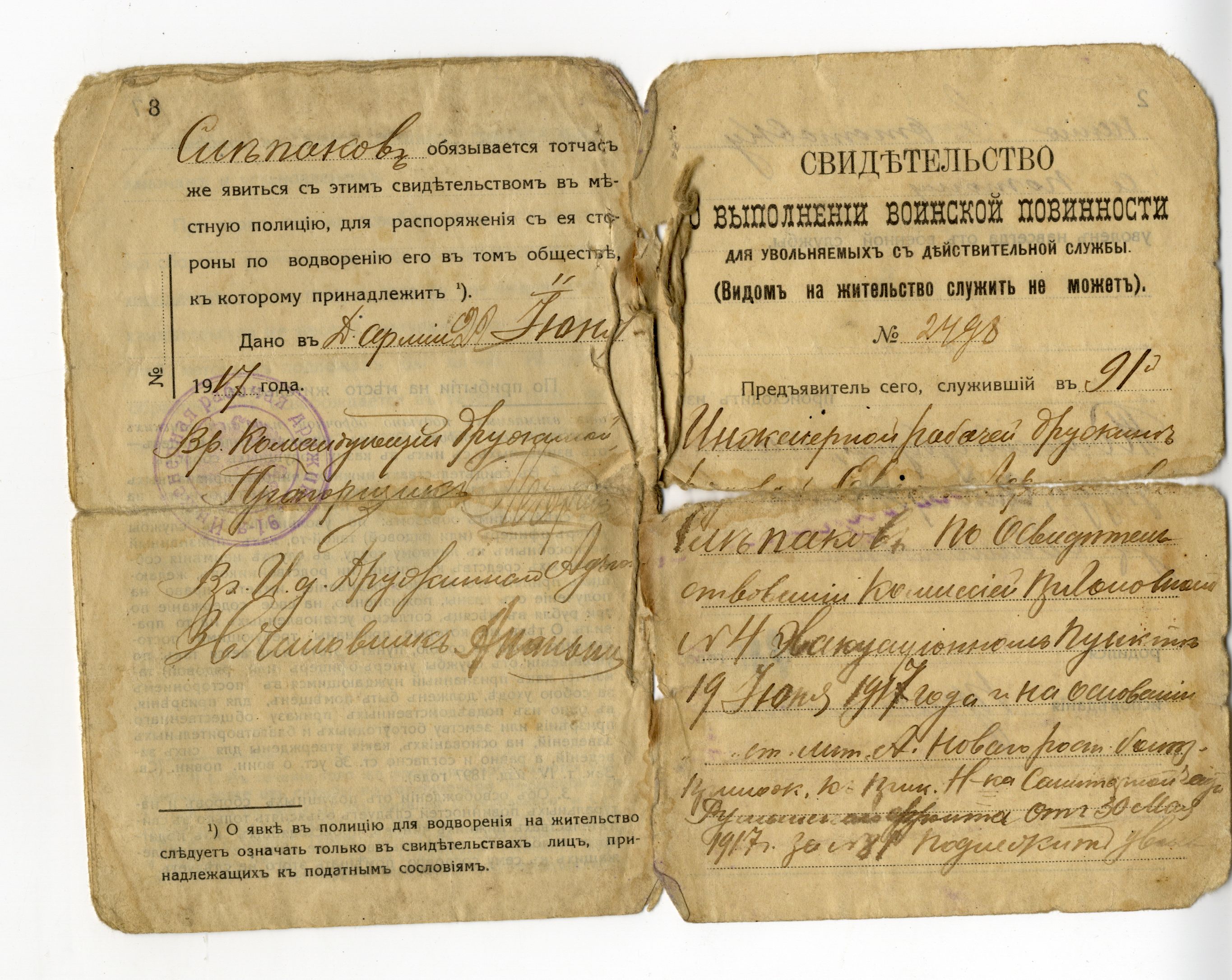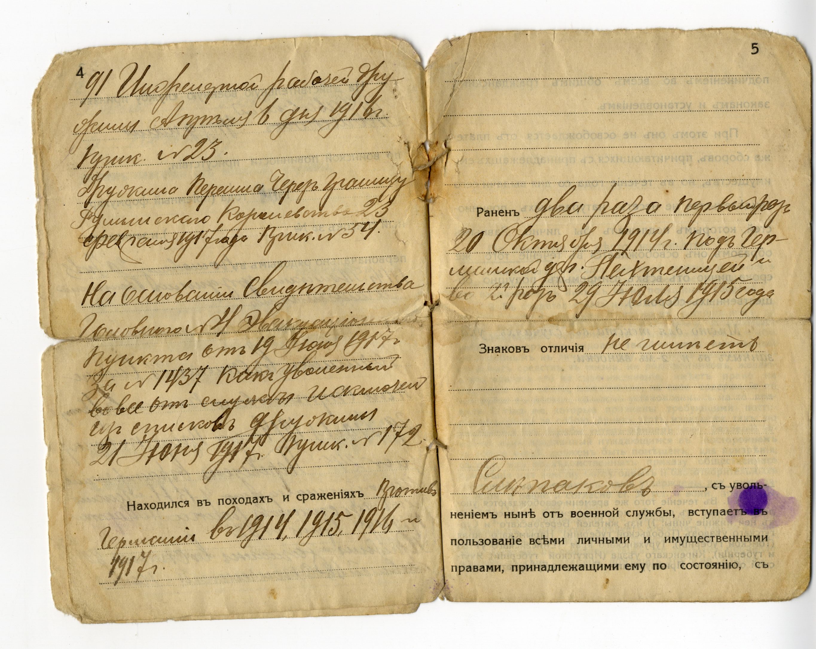 Но был и участник первой мировой. Евмен Афанасьевич Слепаков отслужил в армии с 1914 по 1917 гг., имел солдатскую книжку, получал пенсию.