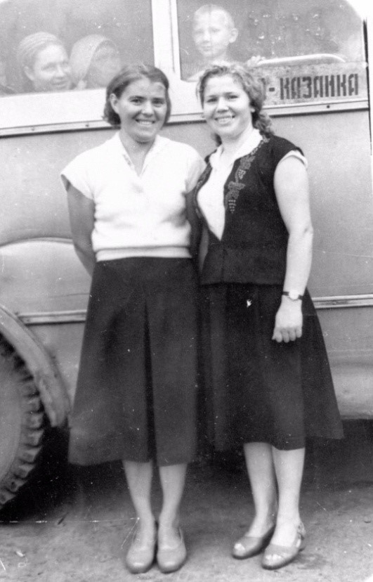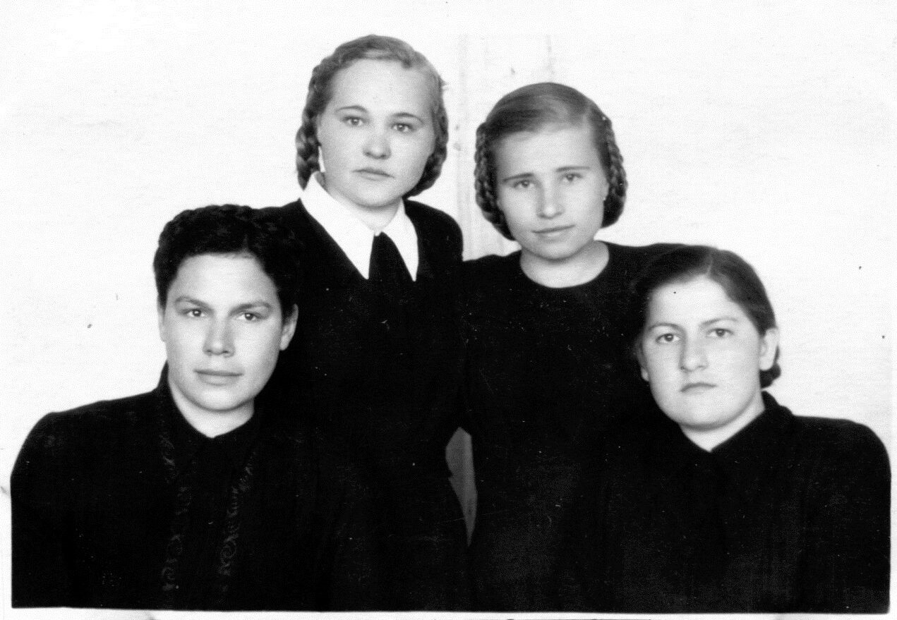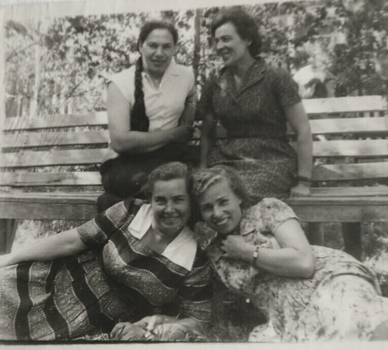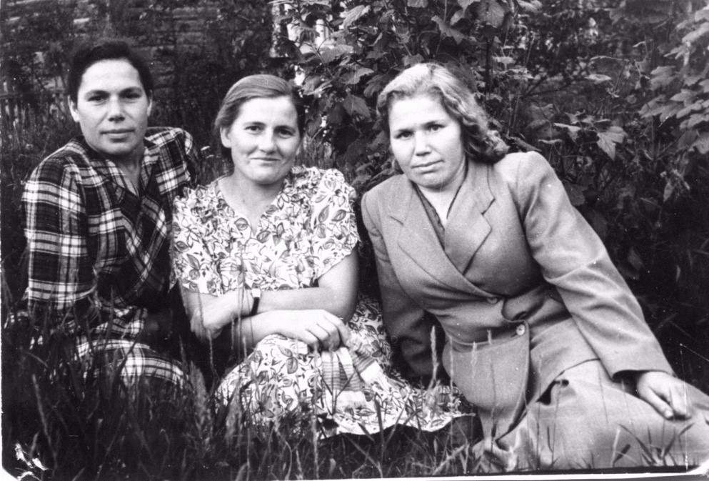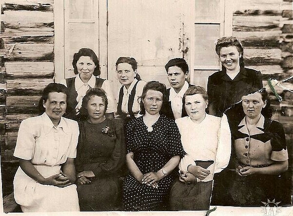 Слева направо: Абакумова Антонина, Минакова Мария, Минакова Антонина, Писарева Христина, Мизгирева Мария. 1952 год