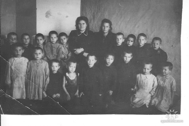 Крайняя слева воспитатель Вышегородцева (Мищенко) Н.Ф., младшая группа детей Ново-Кусковского детского дома.
