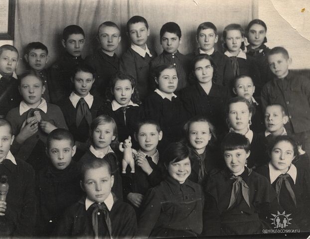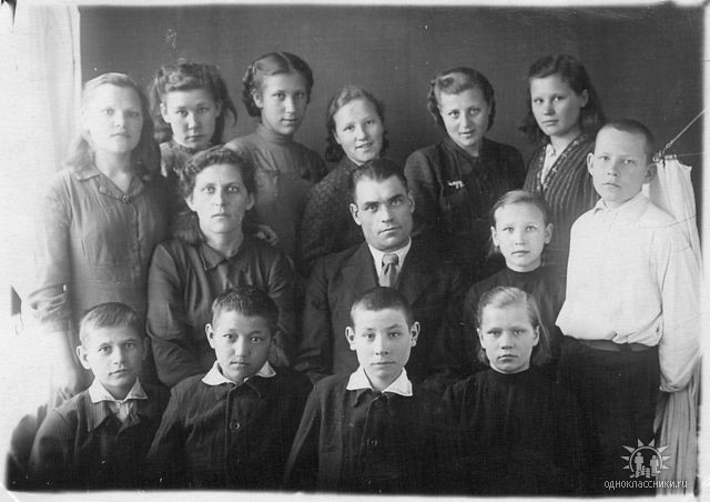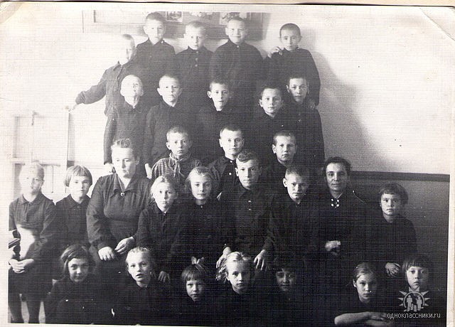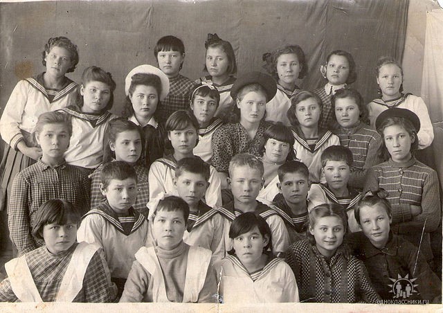 4-ый ряд слева направо: Бабарыкин, Кунакова Таня, Грызлова Валя, Люфт Элла. Фото из альбома Зыряновой Любови Васильевны.