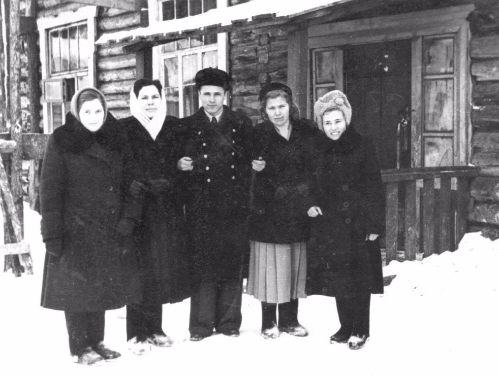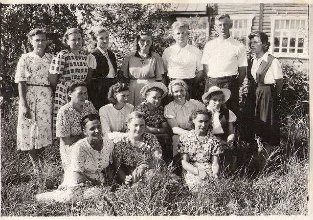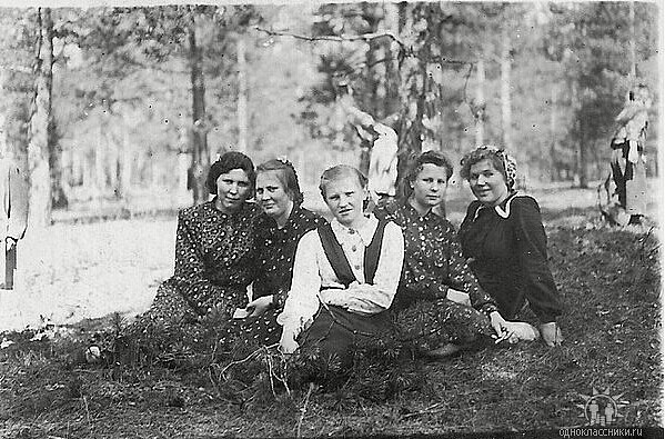 Слева направо: Чернышова (Пирогова) Валентина Петровна, Голик Надежда Николаевна, мужчина – не известен, Сухачева (Мизгирева) Мария Алексеевна, Шерстнева (Васильева) Лидия Васильевна.