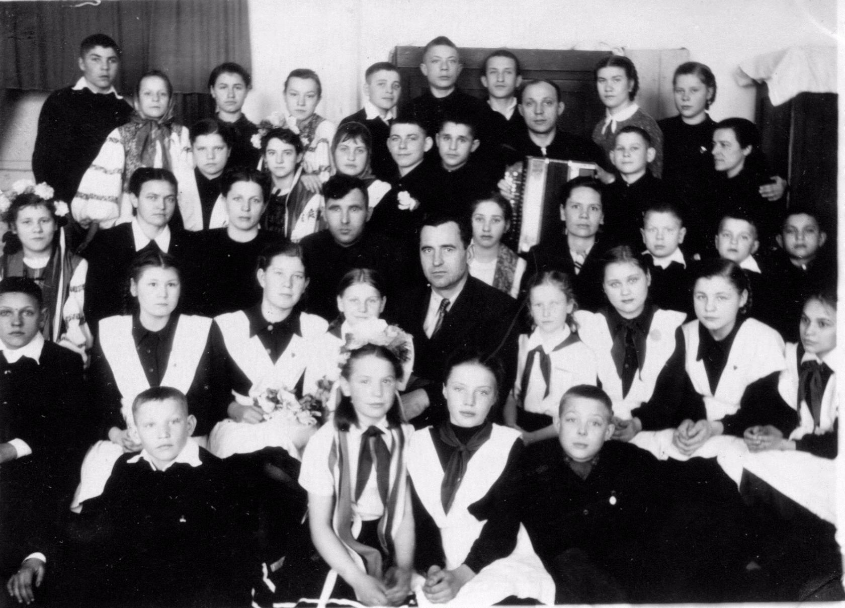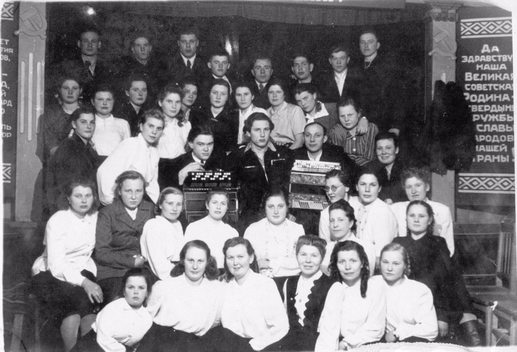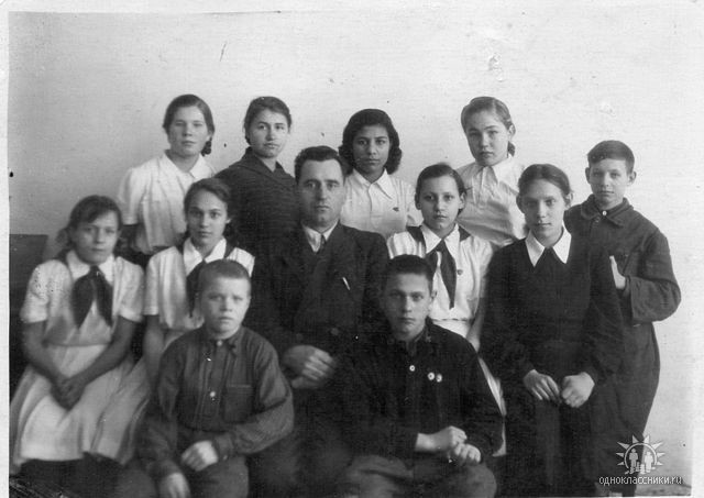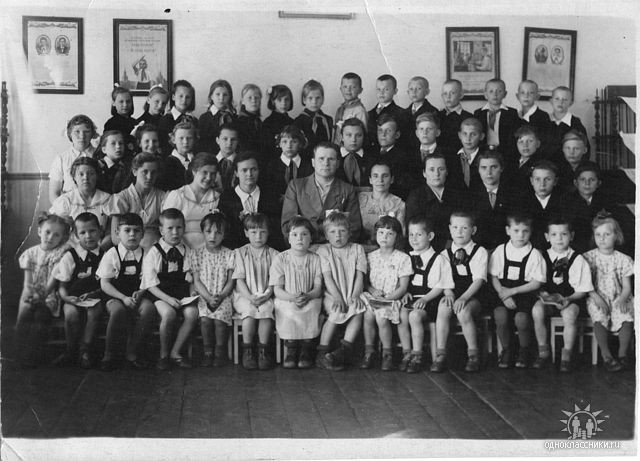 2-ой ряд слева направо: Сухачева Люба, Вышегородцева Нина, Кливинская Лида, Шилова Н. И, Мария НаумовнаКузьменко, Акулов С, Федецкий Саша.