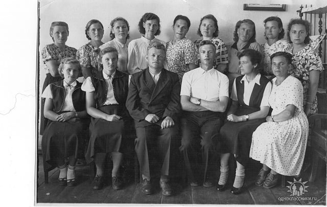 3-ий ряд слева направо: Никитин Л, Морозов, Смолянкина Тоня, Гвоздикова Галя, Бурдавицына Л, Зуева Н, Серяков Г.