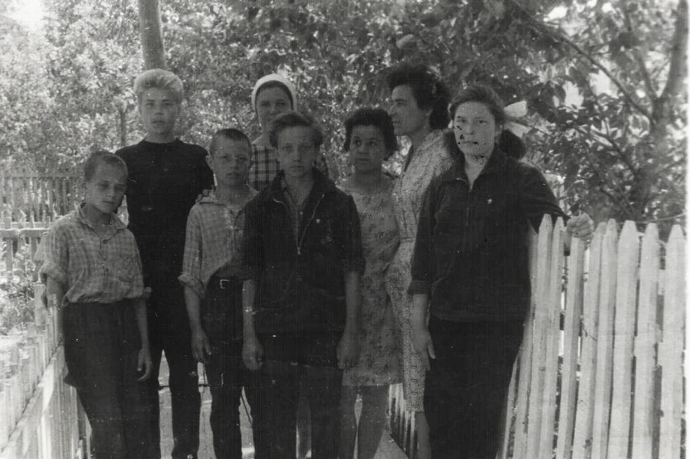 Попова З.С., Вышегородцева (Мищенко) Н.Ф. с воспитанниками детского дом. Год 1953-55