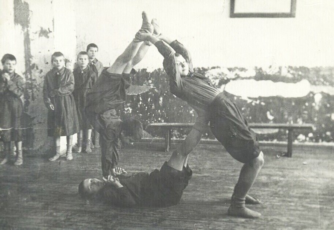 «Вообще жизнь у школьников и пионеров была интересная. Они организовывали кружки, занимались физкультурой, но не как сейчас, а делали разные пирамиды. Были настоящими циркачами. А по праздникам показывали наиболее затейливые пирамиды односельчанам. Всем очень нравилось».