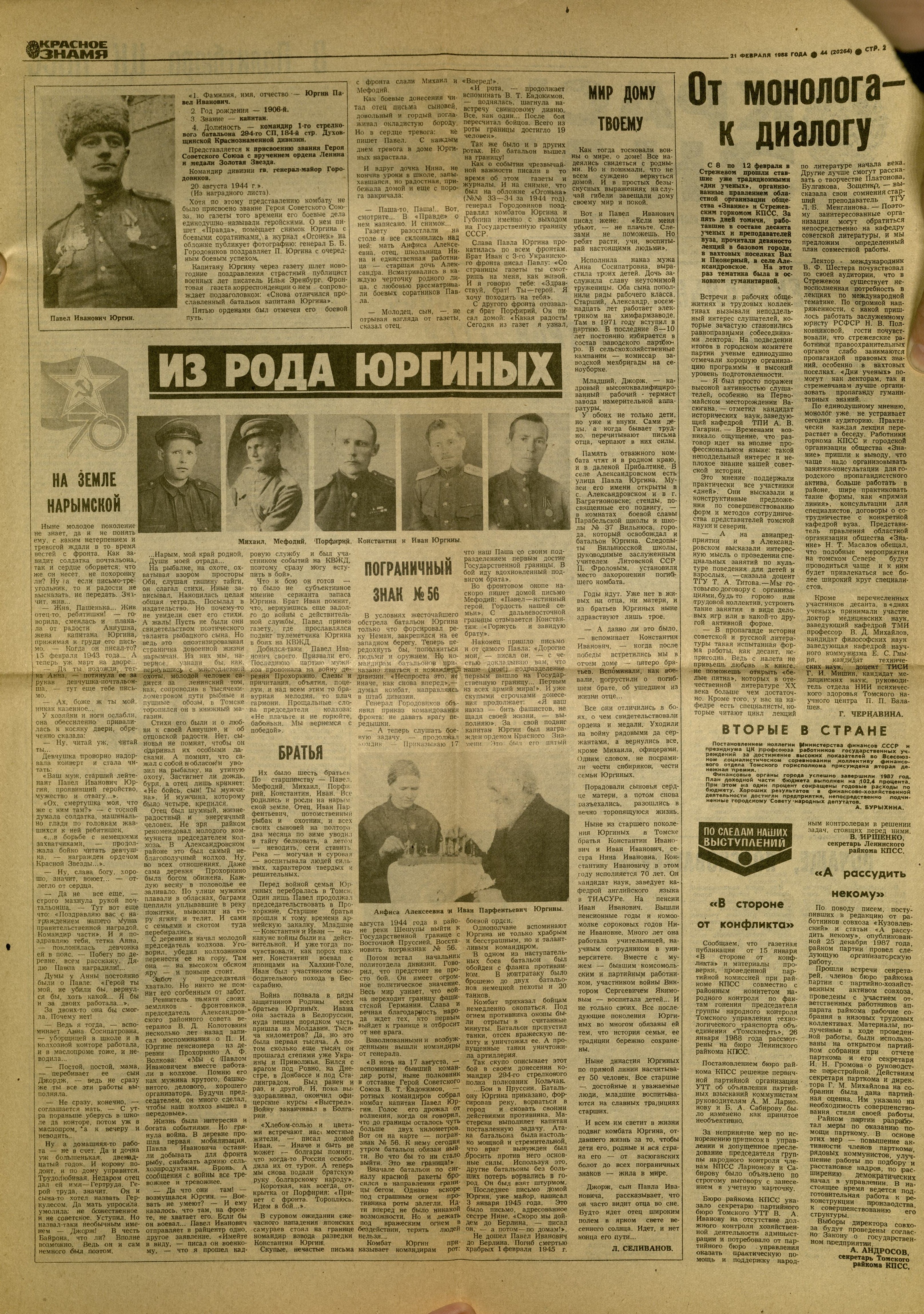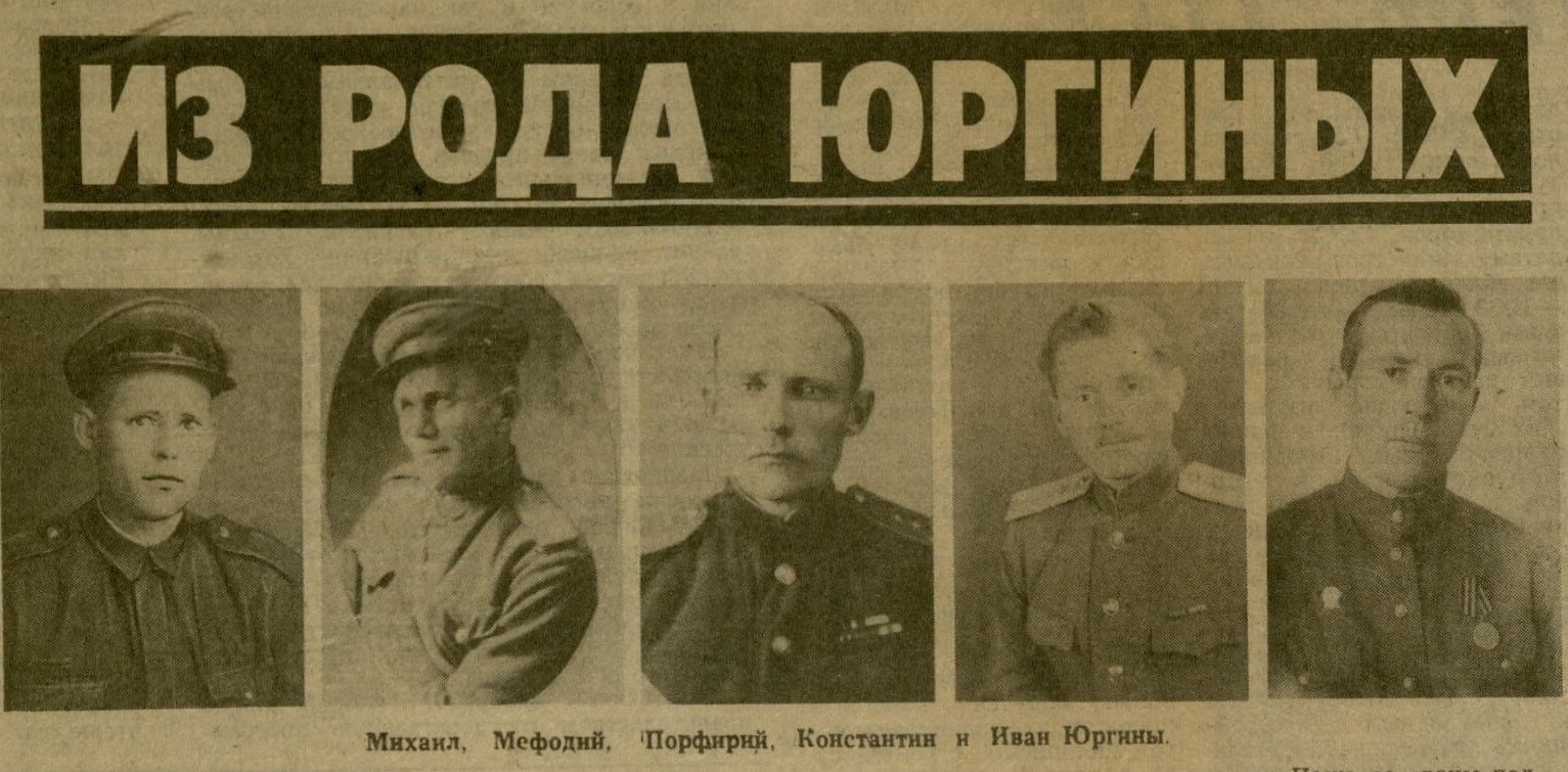 Всего из семьи Юргиных на фронт ушли шестеро сыновей. С фронта не вернулся только старший, Павел Иванович. Остальные сыновья с честью воевали на разных фронтах и вернулись домой.