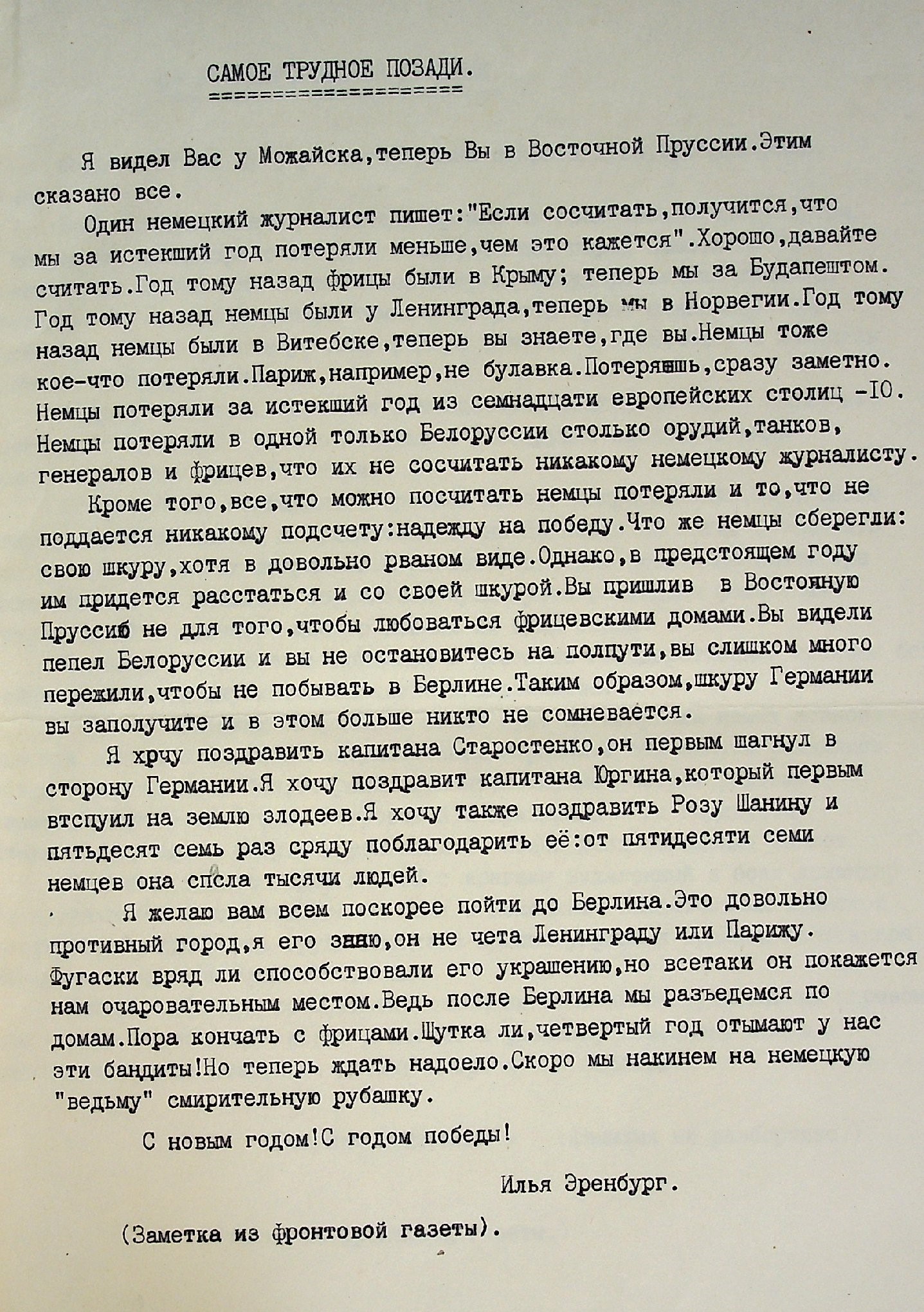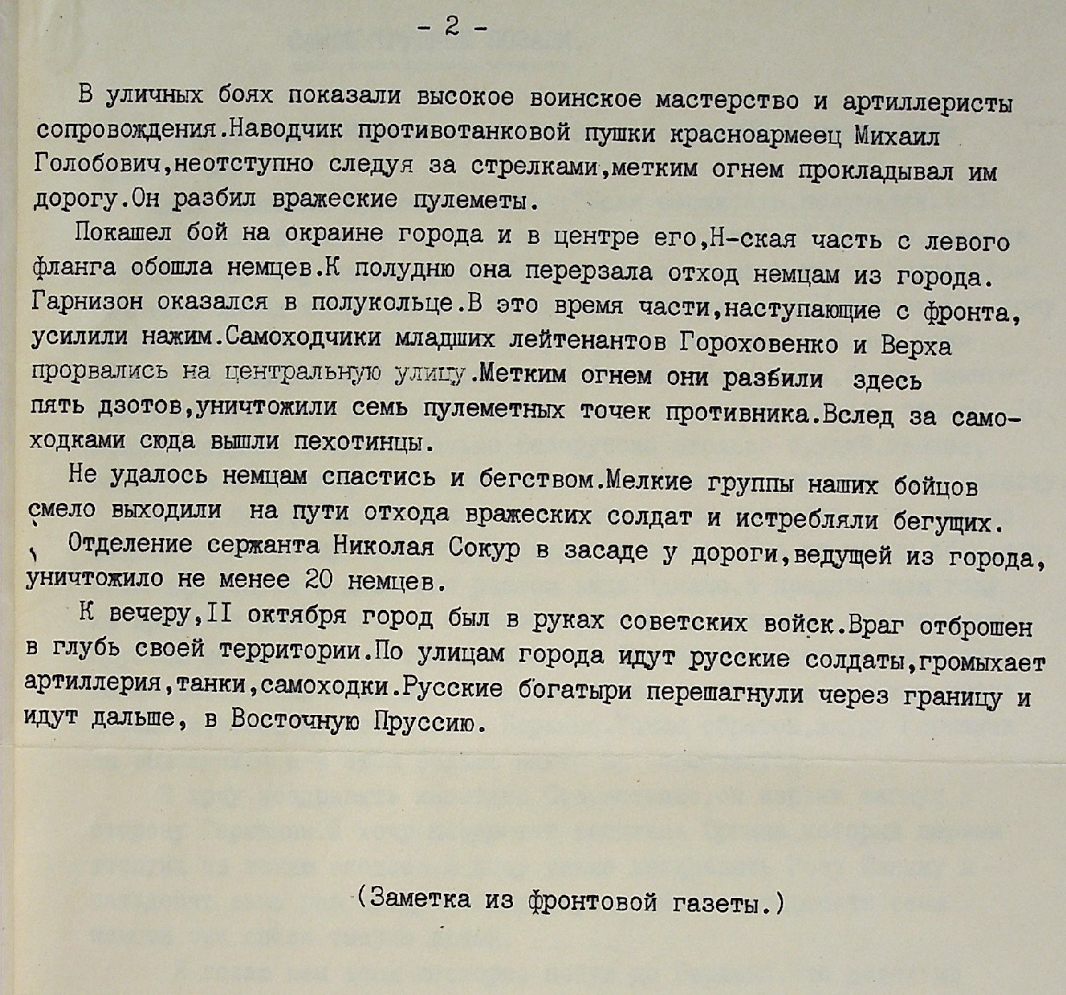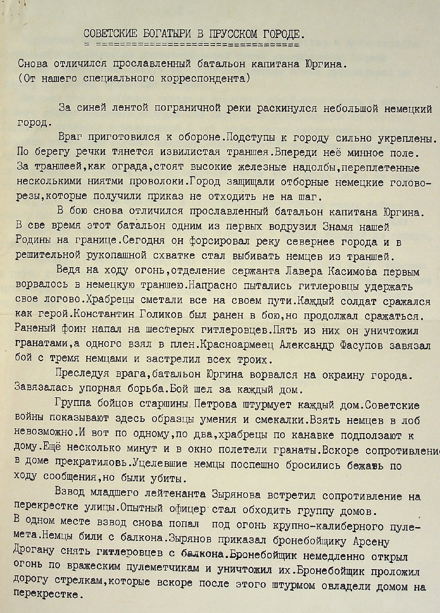Мы начинаем публикацию материалов о майоре П.И. Юргине, командире батальона 184 стрелковой дивизии, который в августе 1944 г. первый вышел на государственную границу с Восточной Пруссией. В ходе кровопролитных боёв из роты к границе вышло всего 19 человек.