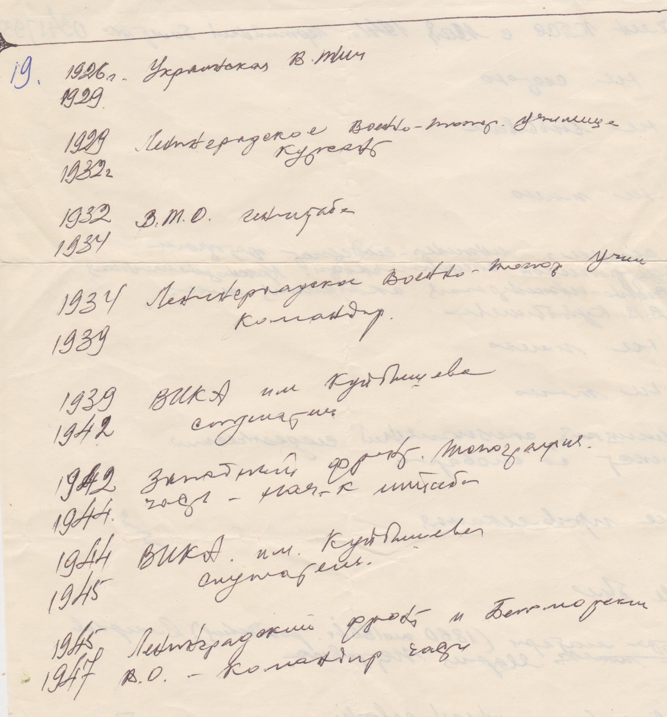 1934 – 1939 Ленинградское Военно-топографическое училище. Командир