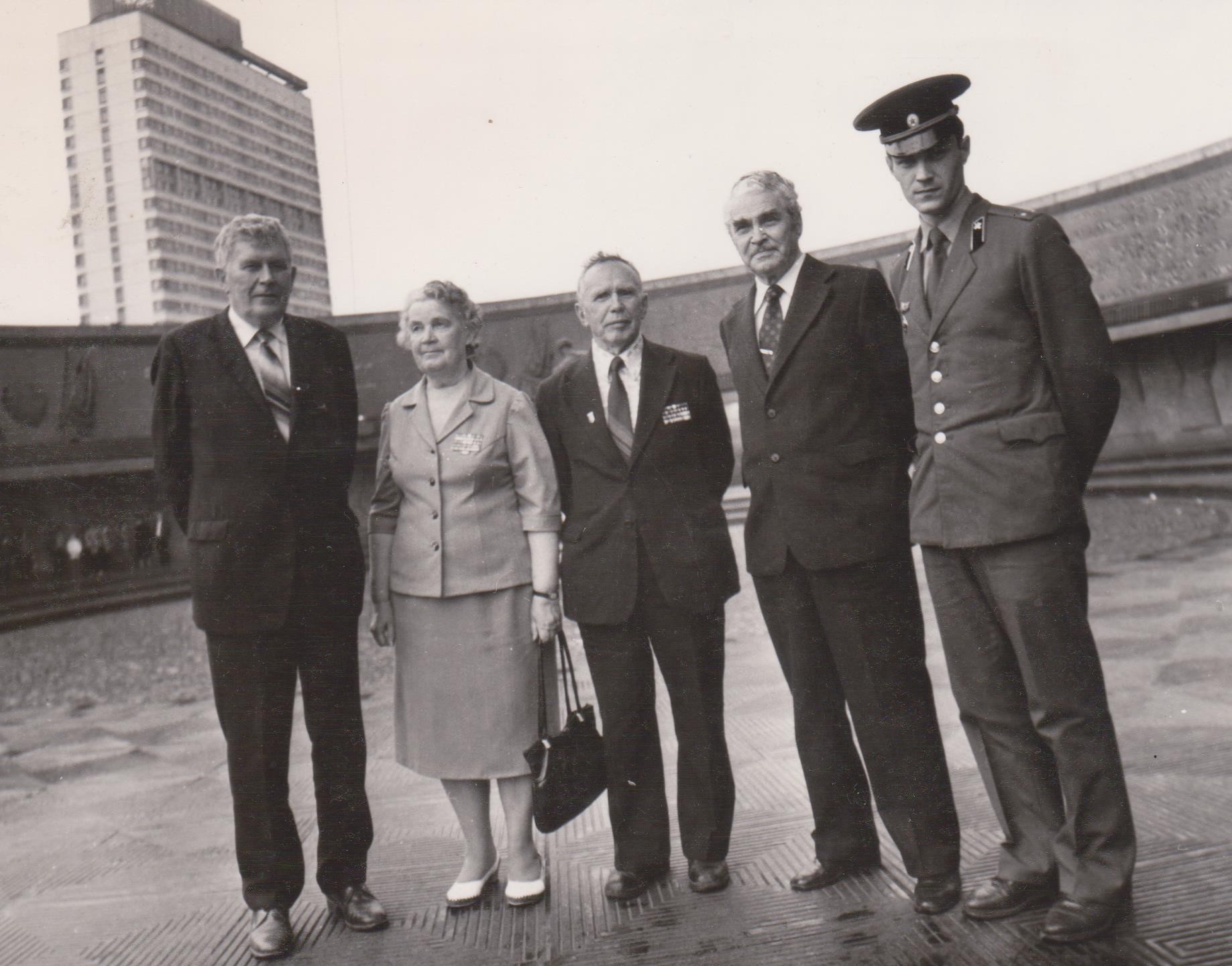 Сфотографировались бывшие выпускники (ветераны топографической службы, участники Великой Отечественной войны) В.Г. Жирков, М.А. Лотц, В.П. Родюков, Б.Н. Рубцов, А.И. Евстигнеев у Знамени училища (см. в разделе «На волнах памяти 1982-1985»), а также с руководством и ветеранским активом училища.