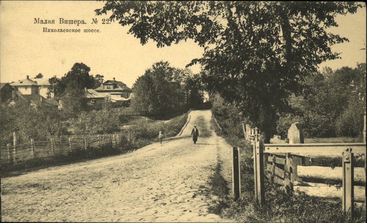 11Рождение селения Малая Вишера связано со строением железнодорожной магистрали Санкт-Петербург – Москва. В 1843 году артель крепостных крестьян на берегу реки срубила из вековых сосен казенную избу для приказчика, десятника и прочих распорядителей, которая стала первым сооружением будущего города. Название станции Малая Вишера дала река. Река Малая Вишерка – правый приток Волхова, носит явно неславянское имя. Писцовые книги XV века упоминают на остаточные следы прибалтийско-финских поселений по Волхову и его притокам. 18 декабря 1871 года состоялись торжества по случаю перевода поселения на станции Малая Вишера в разряд посада.