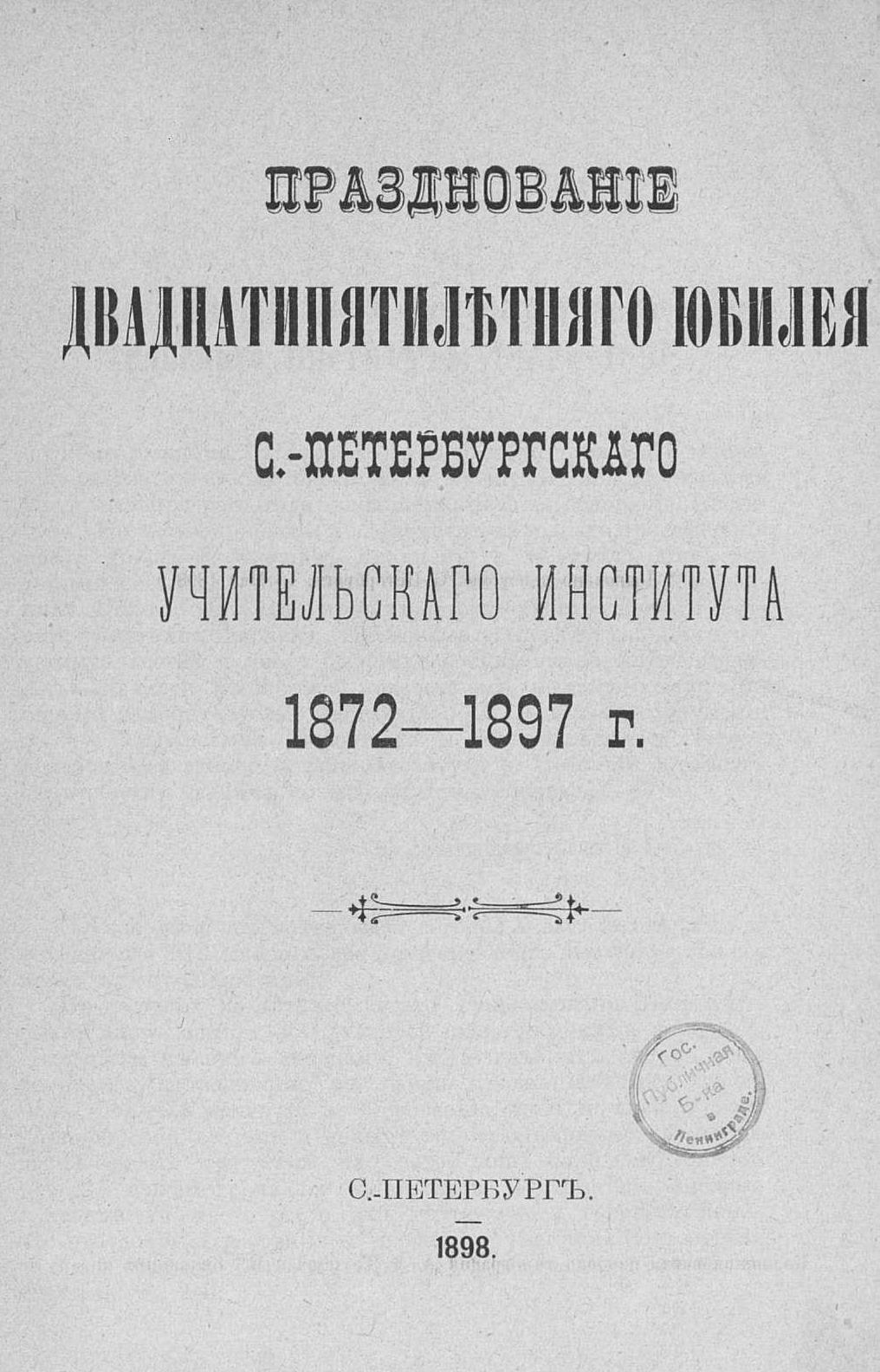 1897. С.-ПЕТЕРБУРГСКИЙ УЧИТЕЛЬСКИЙ ИНСТИТУТ ОТМЕЧАЕТ ЮБИЛЕЙ