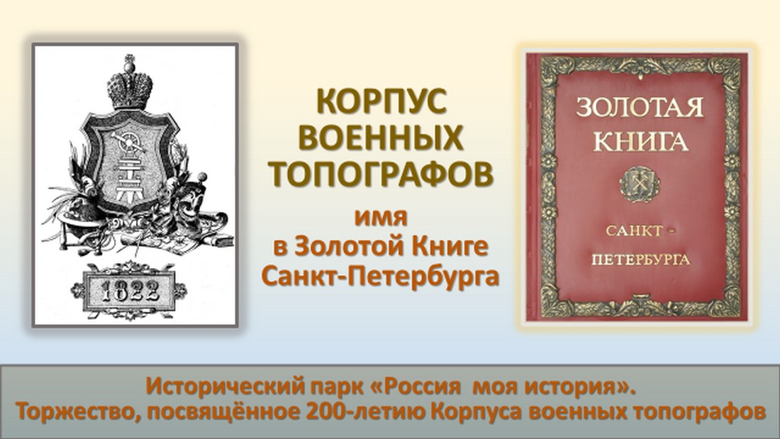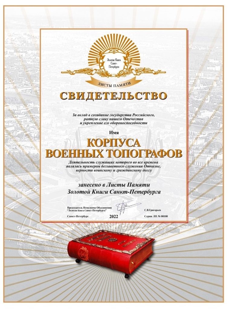 4Использованы материалы с сайта «ЗОЛОТАЯ КНИГА САНКТ-ПЕТЕРБУРГА». Информационный обзор «Идущие впереди побед!» был посвящён 200-летию Корпуса военных топографов.