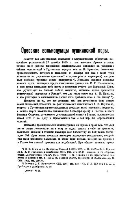 3Оксман Ю.Г. Одесские вольнодумцы пушкинской поры // Былое. № 21. 1923. – С. 49-56.