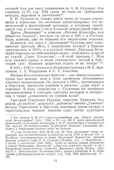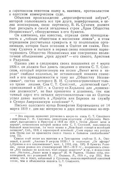 2 Работу о «пифагорийцах» Ю.Г. Оксман начал в 1929 г., выпустив листовку: Литература «Заговора Равных» в России. «Пифагоровы законы» Сильвестра Марешаля в переводе В.С. Сопикова «Правила Соединенных Славян»: Тезисы доклада. 8 мая 1929 г. Впоследствии материал был изложен в статье: Оксман Ю.Г. «Пифагоровы законы» и «Правила соединенных славян» // Очерки из движения декабристов. М: АН СССР, 1954. Чуковский прочитал эту работу до появления ее в печати.