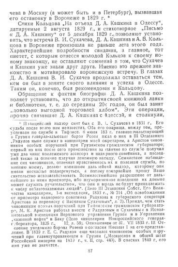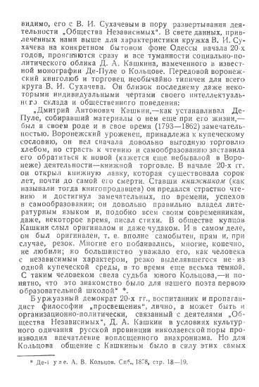 Раздел рецензируемой книги, посвящённый Кольцову (А.В. КОЛЬЦОВ И ТАЙНОЕ «ОБЩЕСТВО НЕЗАВИСИМЫХ»), ранее был опубликован в «Учёных записках» Саратовского университета.