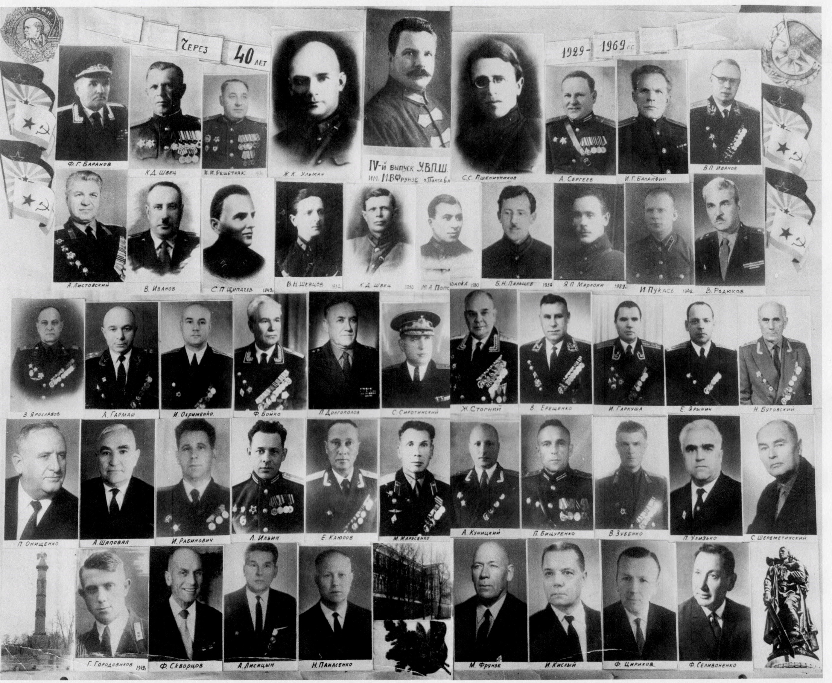 2 ряд: П. А. Онищенко, Ф. С. Скворцов, инженер-полковник М. И. Марусенко, Я. М. Табунченко, полковник Г. И. Иофик, полковник А. И. Буклан, В. М. Добрянский, М. Л. Винавер, Т. Д. Ермоленко, А. В. Милянский, И. Б. Шойхет, полковник В. П. Родюков.