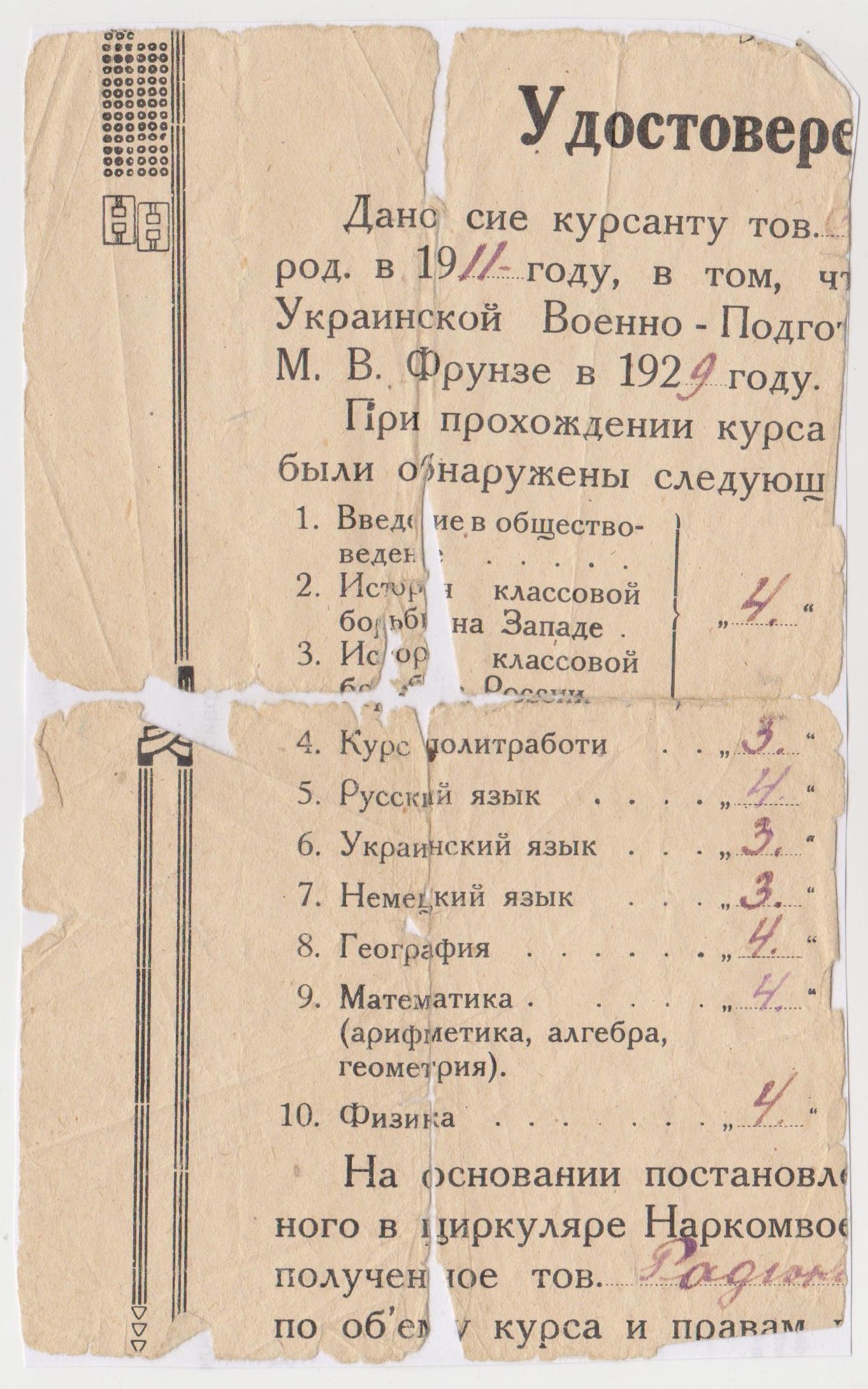 Есть в жизни каждого человека незабываемые страницы детства, отрочества, юности. Вот и у папы такими страницами, определившими всю дальнейшую жизнь, стали годы учёбы в Украинской военно-подготовительной школе им. М.В. Фрунзе.