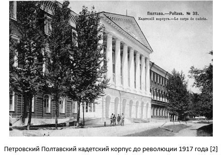 2Петровский Кадетский корпус (Интернет). В этом уникальном здании Кадетского Корпуса, созданном по инициативе губернатора Н.Г. Репнина, преподавали выдающиеся педагоги. Выпускниками этого учебного заведения был герой обороны Порт-Артура полковник С.А. Рашевский, художник Н.А. Ярошенко, композитор Н.И. Казанли, генерал М.А. Домонтович. Учащимися Петровского Кадетского корпуса в Полтаве были также впоследствии причисленные к лику святых князь императорского дома Игорь Константинович Романов (из Алапаевских мучеников) и Михаил Максимович, в будущем - Иоанн, архиепископ Шанхайский и Сан-Францисский. В советское время здесь располагалось зенитно-артиллерийское училище им. Ватутина. Авторитет его был настолько велик, что даже после развала страны, когда стало ясно, что Украина не может содержать такое большое количество училищ, поступали неоднократные предложения со стороны России и Казахстана о совместном использовании богатейшего потенциала этого учебного заведения. Однако украинское правительство решило иначе...