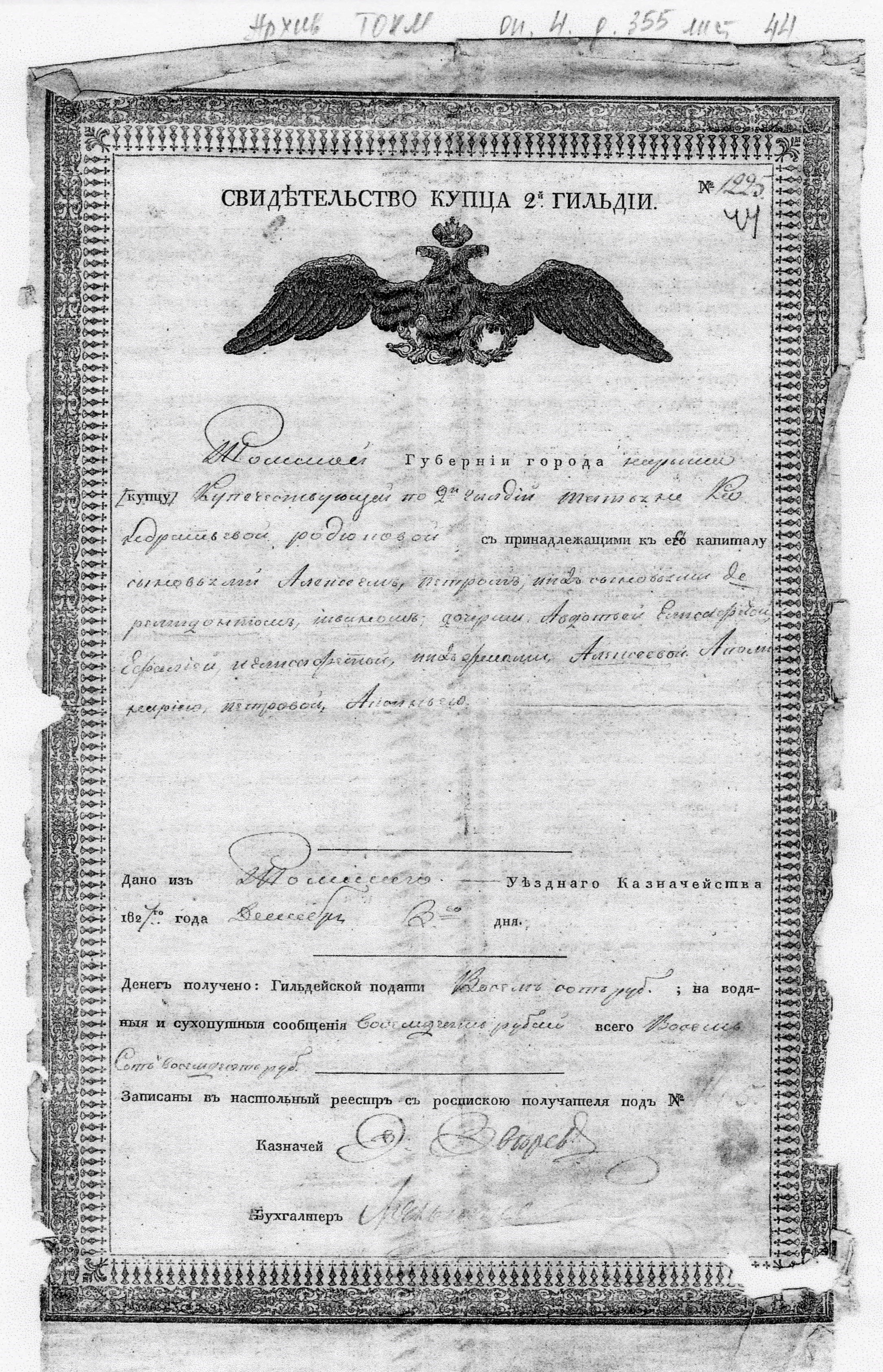 СВИДЕТЕЛЬСТВО КУПЦА 2й ГИЛЬДИИ